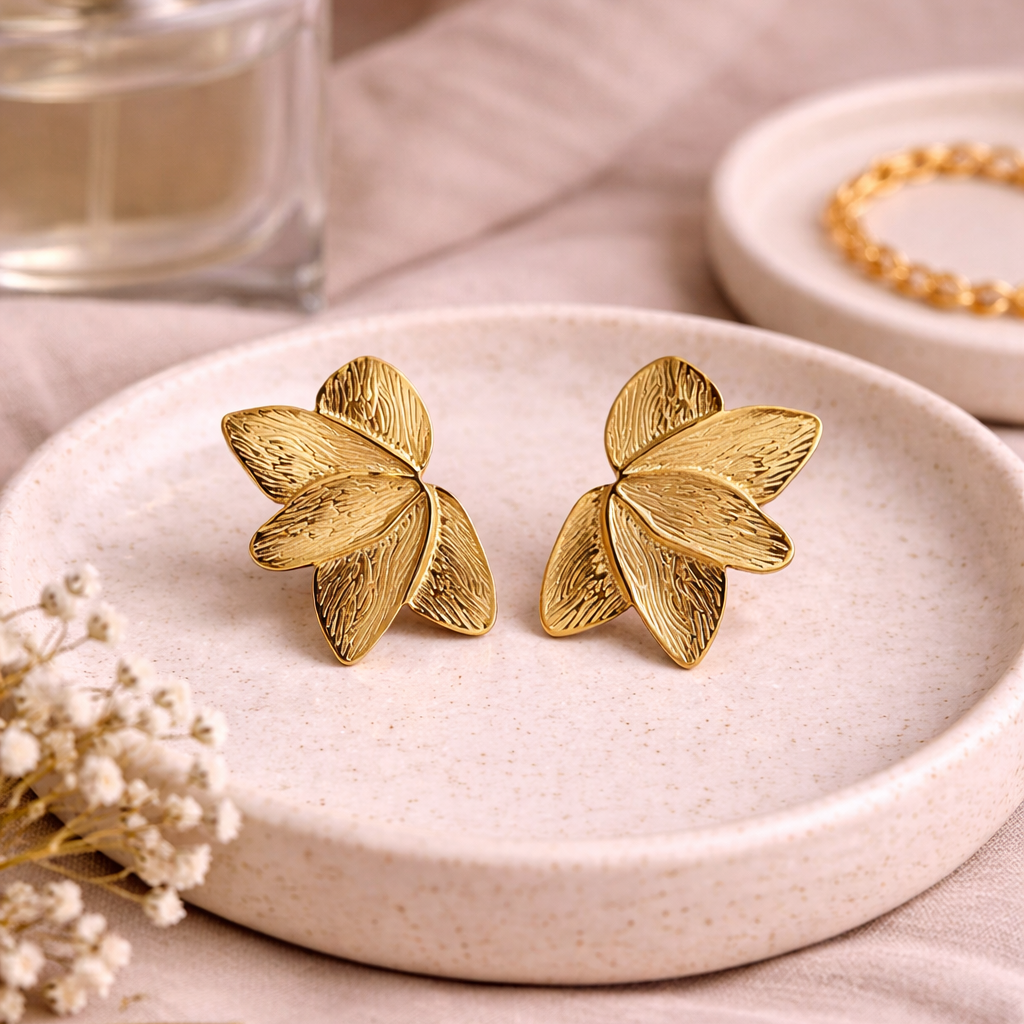 18K Gold Plated Leaf Stud Earrings
