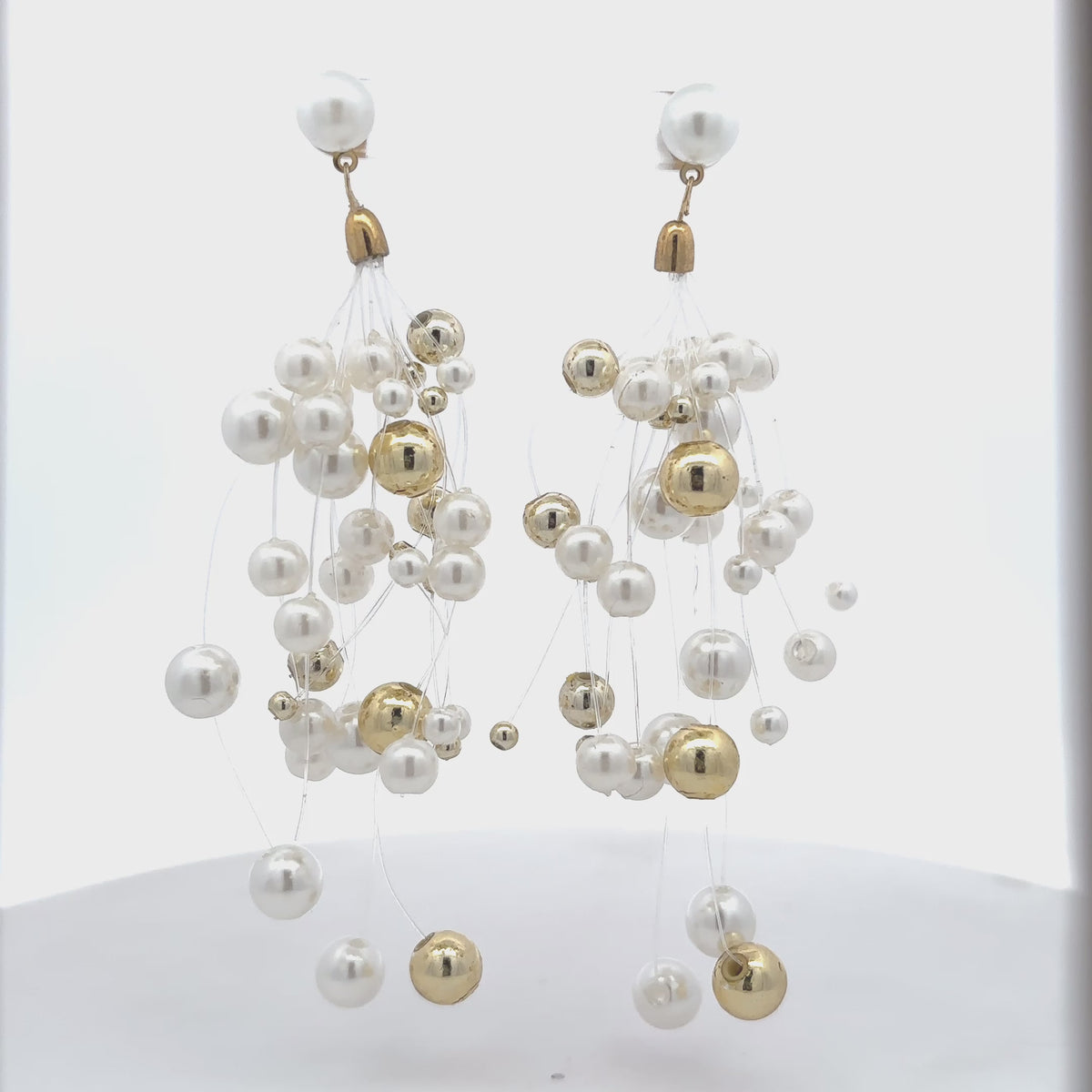 18K Gold Plated Pearl Cluster Drop Earrings