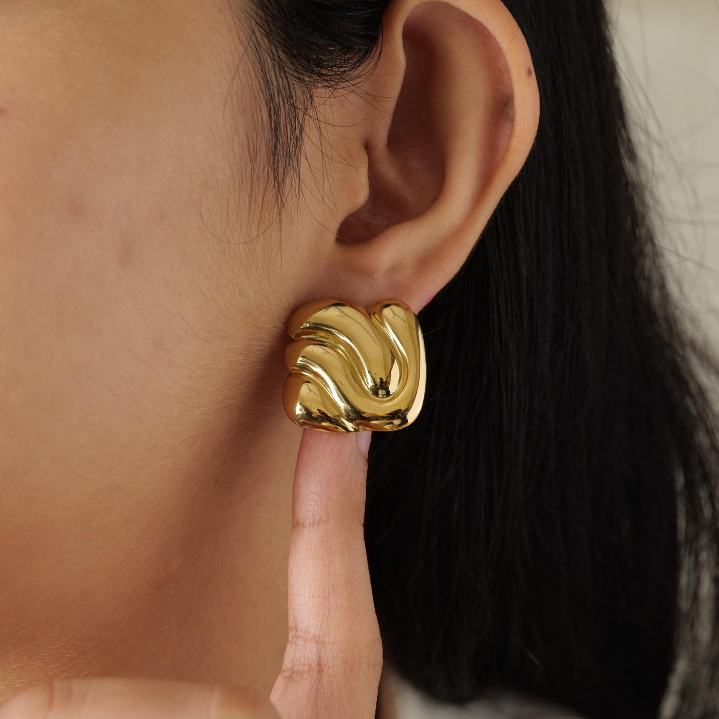 18K Gold Plated Sculpted Stud Earrings